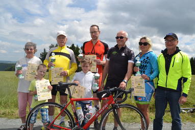 Döbra – Nach mehreren Stunden und vielen Kilometern auf dem Rad kamen die Teilnehmer der Scherdel-Frankenwaldtour ans Ziel. Am Sportheim gab es etwas gegen Hunger und Durst und nach einer Pause schritt WSV-Vorsitzender Werner Bayer zur Siegerehrung, bei der allerdings nicht die Schnellsten Pokal und Urkunde erhielten. Der Wintersportverein würdigte mit dem fünfjährigen Louis Martin aus Schwarzenbach am Wald und der siebenjährigen Leonie Geier aus Hof die jüngsten Teilnehmer. Die ältesten Starter hießen in diesem Jahr Dr. Angela von Leitner-Grimm (77 Jahre) aus Hof und Adolf Katzenberger (84 Jahre) aus Thierbach. Der stärkste Verein war der RC Pfeil Hof und am weitesten war Bertram Liebaug angereist. Er kam aus Berlin.