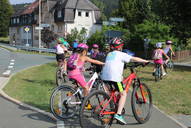 Das Ferienprogramm startete mit einer Fahrradtour. Mehr als ein Dutzend Jungs und Mädchen wurden dabei von Werner Bayer und Thomas Goppold vom WSV betreut. Am Treffpunkt Rathaus erklärte Bayer die Verkehrsvorschriften und kontrollierte, ob bei jedem Kind die Helme richtig sitzen.