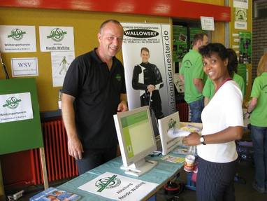 Stellvertretender WSV-Vorsitzender Siegfried Witzgall übernahm als "Team-Leader" die Verantwortung für den WSV-Einsatz und den Info-Stand. Thomas Goppold betreute im Außenbereich des Schulgeländes die Inline-Skating- und Mountain-Bike-Aktivitäten. Er wurde dabei von Anna Dietrich, Sarah Goppold und Doreen Wunner unterstützt. Für den Bereich Nordic Walking standen unsere DSV-zertifizierten Trainer Fred Hagen und Werner Peetz bereit.
